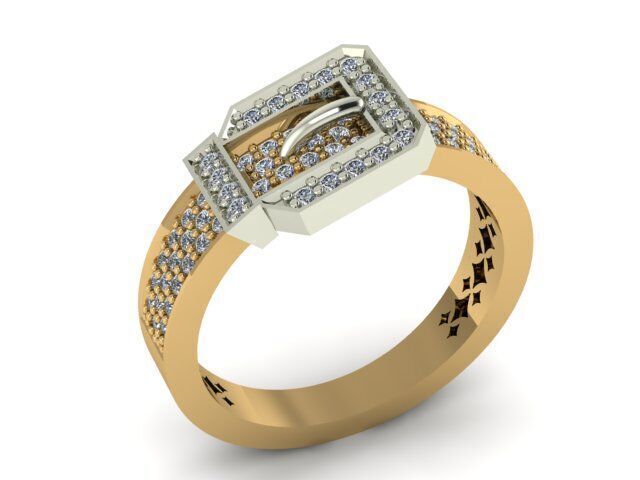 BELTÉRA – 14K Yellow Gold Buckle Ring with 76 Natural Diamonds