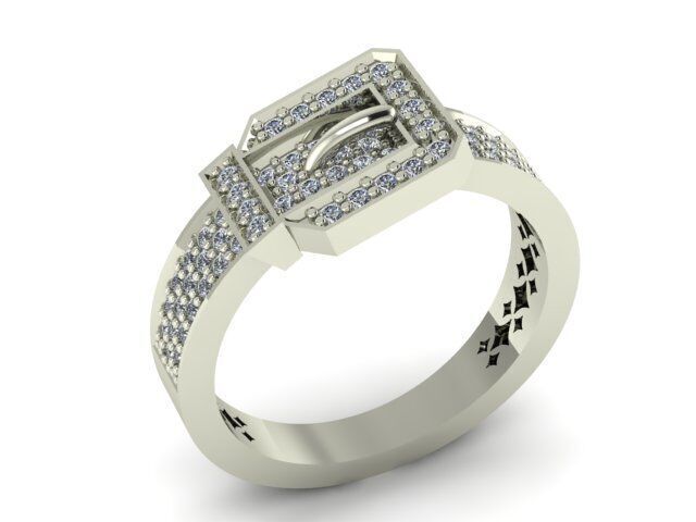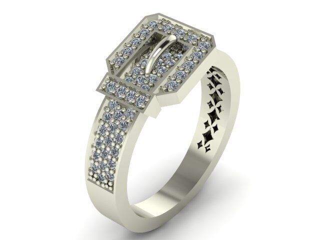 The buckle centerpiece and dual bands are paved with 76 round natural diamonds, meticulously set to capture light from every angle. The white gold buckle enhances contrast and elevates the luxurious presence of the design. Whether worn solo or as a bold companion to other rings, BELTÉRA commands attention with unapologetic glamour.