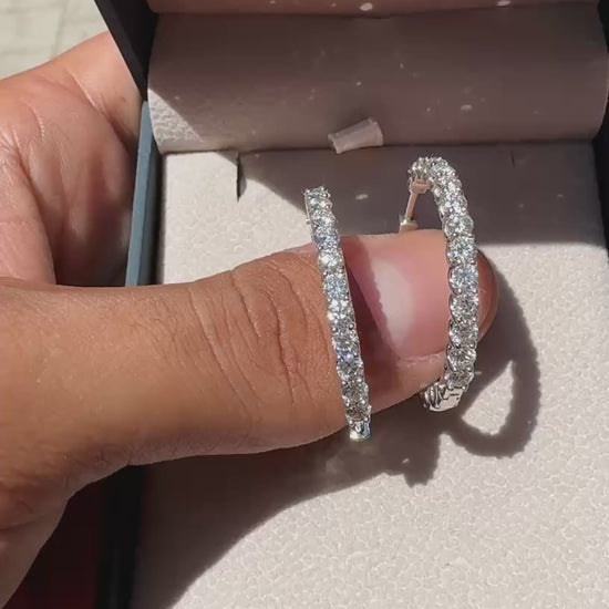 These 14K white gold hoop earrings are a bold statement of presence and prestige, weighing 9.12 grams and set with a total of 4.58 carats of natural diamonds — 2.29 carats per side.